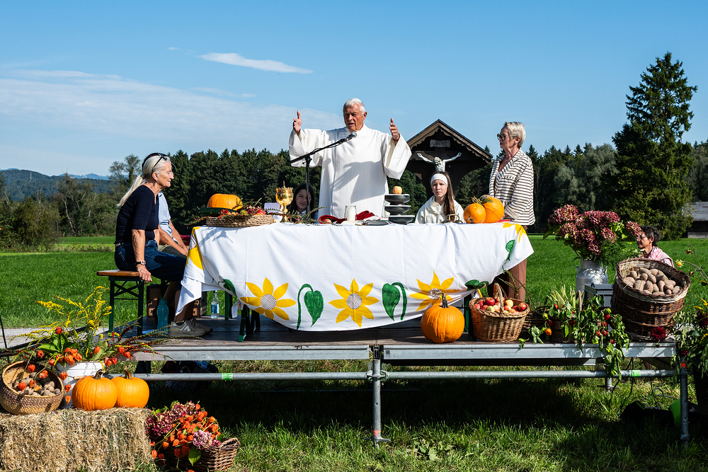Der letzte schöne Herbsttag am 21. September lockte zahlreiche Besucherinnen und Besucher ins Naturschutzgebiet, wo wir mit einer Messe, zelebriert von Vikar Stefan Biondi, für die Gaben der Natur, für die Schöpfung, die uns überantwortet wurde, Gott dankten. Der Musikverein Nofels begleitete die Messfeier mit wunderbaren Liedern.