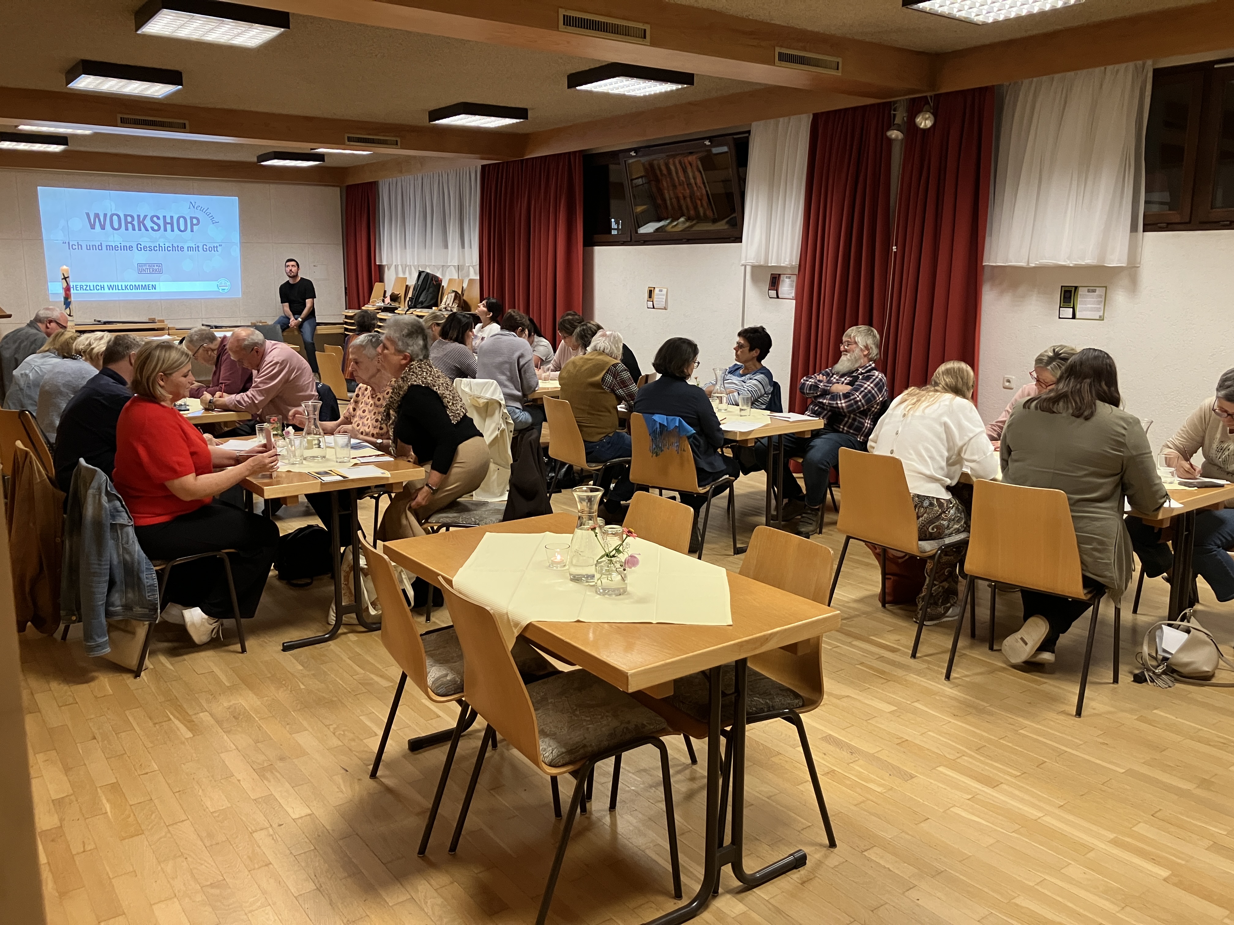 Am Dienstag, den 23. September, fand im Pfarrsaal Tosters ein Workshop zur Vorbereitung der Vorarlbergweiten Kampagne „Gott isch ma unterku“ statt. Unter dem Titel „Ich und meine Geschichte mit Gott“ haben 29 Teilnehmende über ihre persönliche Erfahrungen mit Gottes Gegenwart nachgedacht: Wo habe ich Gott konkret erlebt? Wo war seine Nähe spürbar?